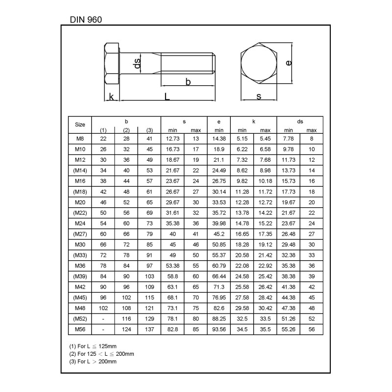 Skrutka podľa normy DIN 960 s jemným metrickým závitom a pevnostnou triedou 10.9 je určená pre vysoko zaťažované mechanické spoje, kde je vyžadovaná vysoká pevnosť, presnosť a spoľahlivosť. Skrutka má čiastočný závit a šesťhrannú hlavu, čo z nej robí ideálnu voľbu pre profesionálne strojárske, automobilové a konštrukčné aplikácie.