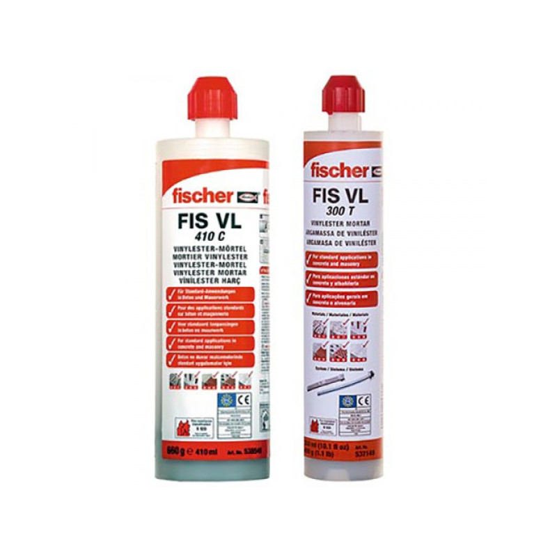 fischer injektážna malta FIS VL je hybridná vinylesterová živica bez styrénu s prímesou cementu vhodná pre bežné použitie do muriva alebo trhlinového a netrhlinového betónu. Kombinuje sa s radom certifikovaného príslušenstva, napr. kotevným svorníkom FIS A alebo kotevným puzdrom RG M I a to v interiéri a exteriéri. Teplotná odolnosť vytvrdnutej malty je od -40 do +120 °C, čím je použiteľná pre veľký rad aplikácií. FIS VL HIGH SPEED má podstatne kratšiu dobu vytvrdzovania a umožňuje tým rýchly postup práce bez zdržania aj pri nízkych teplotách.