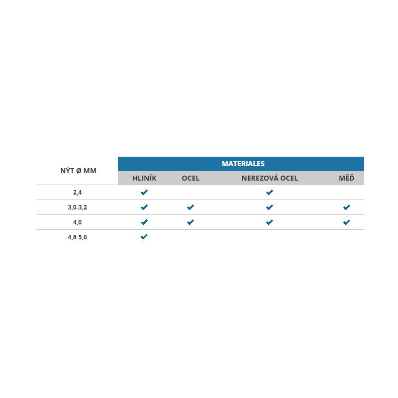 Nýtovací kapacita až 5.0 mm.