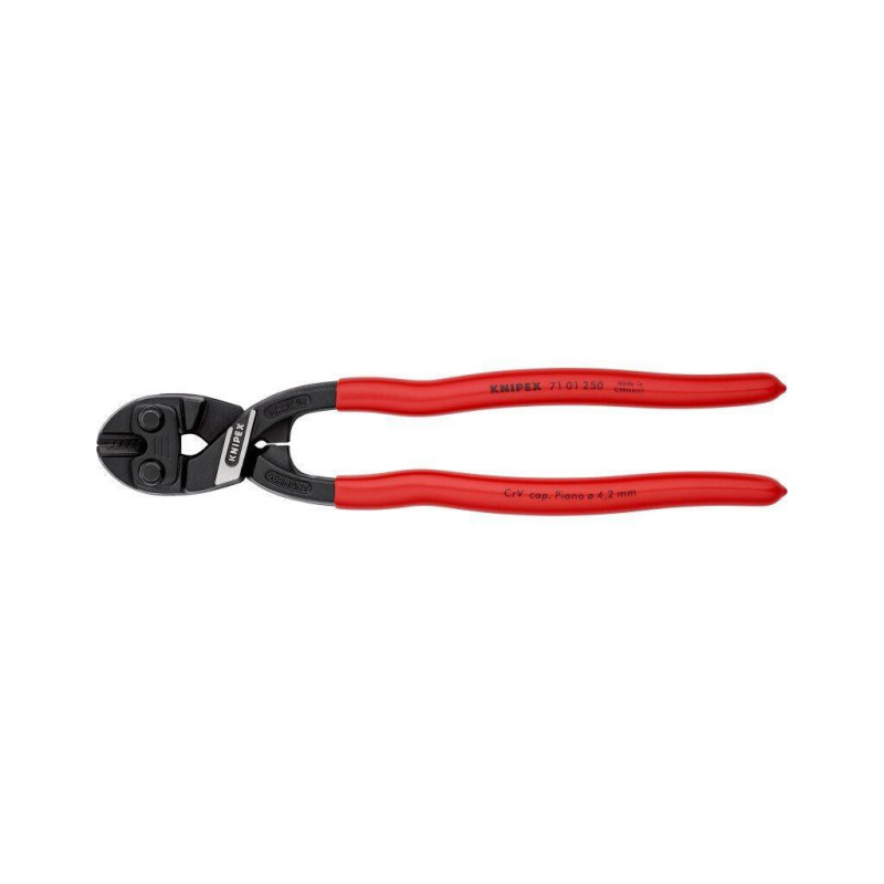 Pre silové strihanie aj väčších prierezov a veľmi tvrdých materiálov; dvojručné ovládanie pre max. reznú silu; úspora 60% sily v porovnaní s rovnako veľkými kliešťami, 40-násobné zosilenie sily ruky vďaka špeciálnej konštrukcii kĺbu; s úchopovou plochou pod kĺbom pre uchopenie a ťahanie drôtu od ø 1,0 mm; indukčne kalené brity, tvrdosť asi 64 HRC; vysoko výkonná chróm-vanádiová oceľ, kovaná, kalená v oleji v niekoľkých stupňoch;