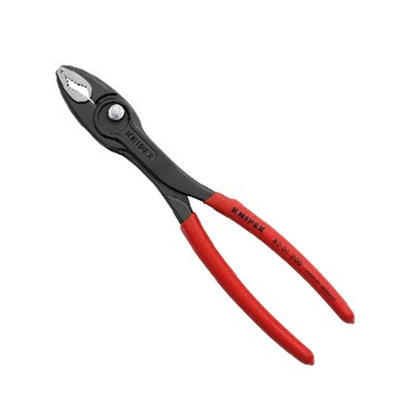 Jedinečá kombinácia: funkcia predného a bočného uchytenia, prevlečný kĺb, nastavenie pomocou tlačidla, veľmi tenké kliešte Vám umožnia pracovať aj v stiesnených priestoroch, s úzkou zónou k otáčaniu pri dosahovaní rýchlych výsledkov, predná čeľusť s vysokým uchytením s robustnými zubmi a vysokým prevodovým pomerom na špičke, pre priemery šírky plochého materiálu 4 - 22 mm, posuvný kĺb nastaviteľný v piatich krokoch s nastavením pomocou tlačidla pre presné nastavenie hrúbky uchytenia, zarážka zovretia znižuje riziko pricviknutia prstov, odolný a robustný prevlečný kĺb, kované z chróm-vanádiovej ocele kalenej v oleji, zuby indukčne kalené na cca 61 HRC