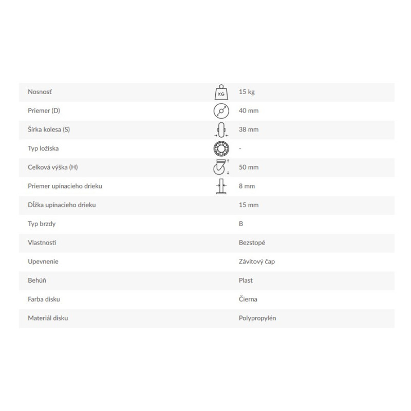 Otočné rolovacie koliesko - spôsob upnutia: závitový čap.