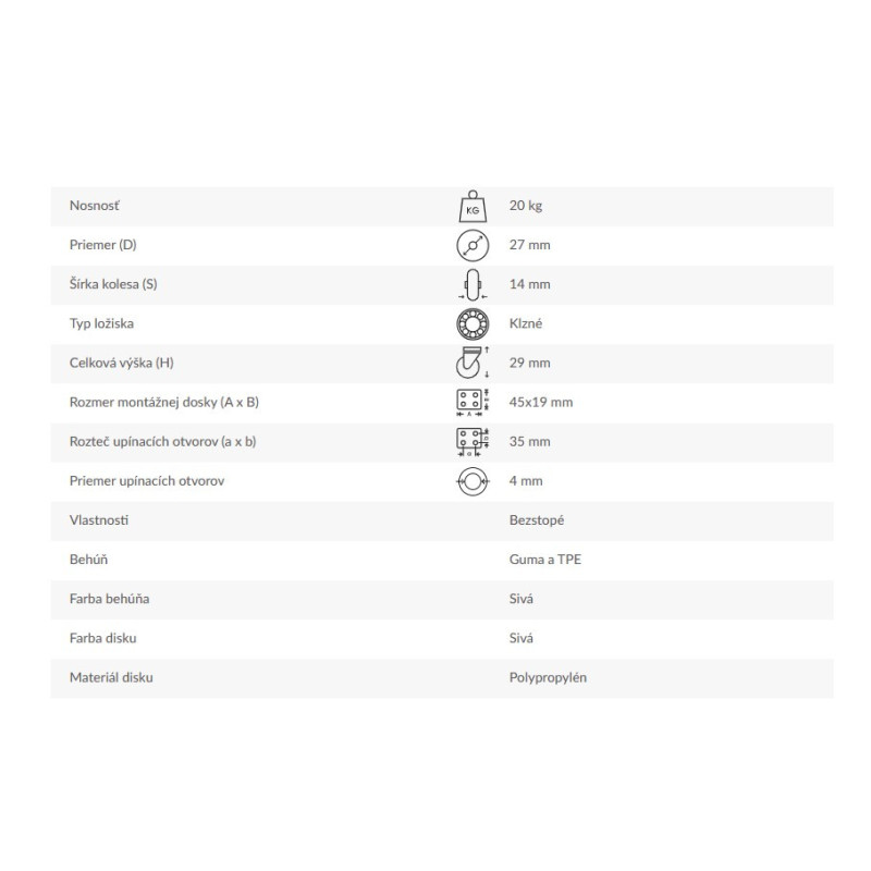 Pevné rolovacie koliesko - spôsob upnutia: montážna doska na štyri otvory (príruba).