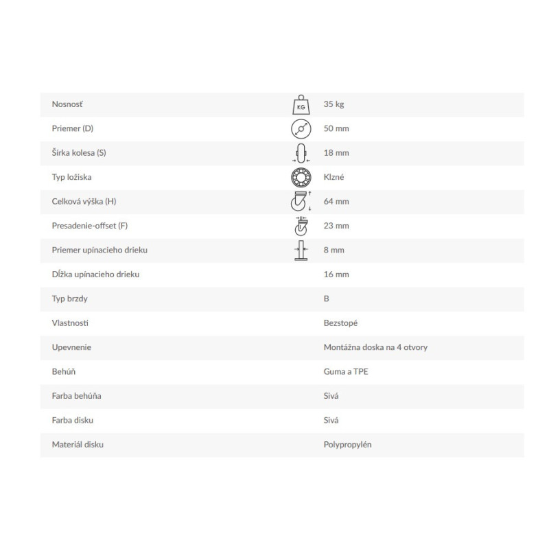 Otočné rolovacie koliesko s brzdou - spôsob upnutia: montážna doska na štyri otvory (príruba).