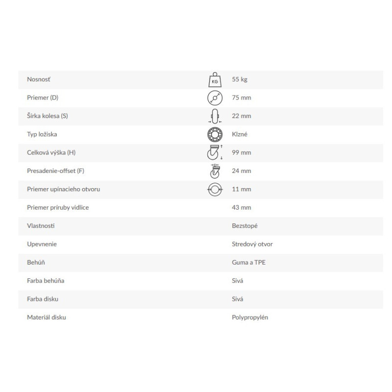 Otočné rolovacie koliesko s montážnou doskou na štyri otvory