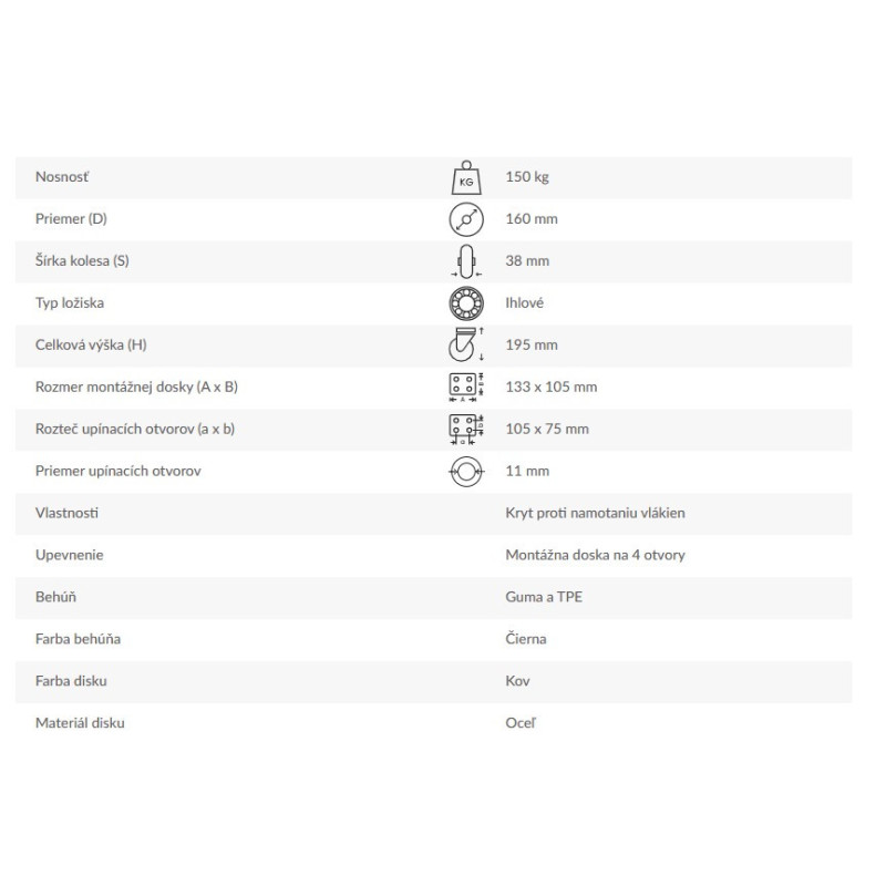 Otočné rolovacie koliesko s montážnou doskou na štyri otvory