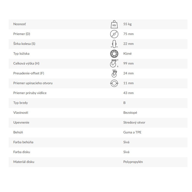 Otočné rolovacie koliesko s brzdou - spôsob upnutia: montážna doska na štyri otvory (príruba).