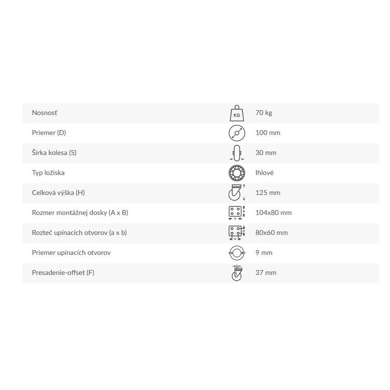 Pevné rolovacie koliesko - spôsob upnutia: montážna doska na štyri otvory (príruba).