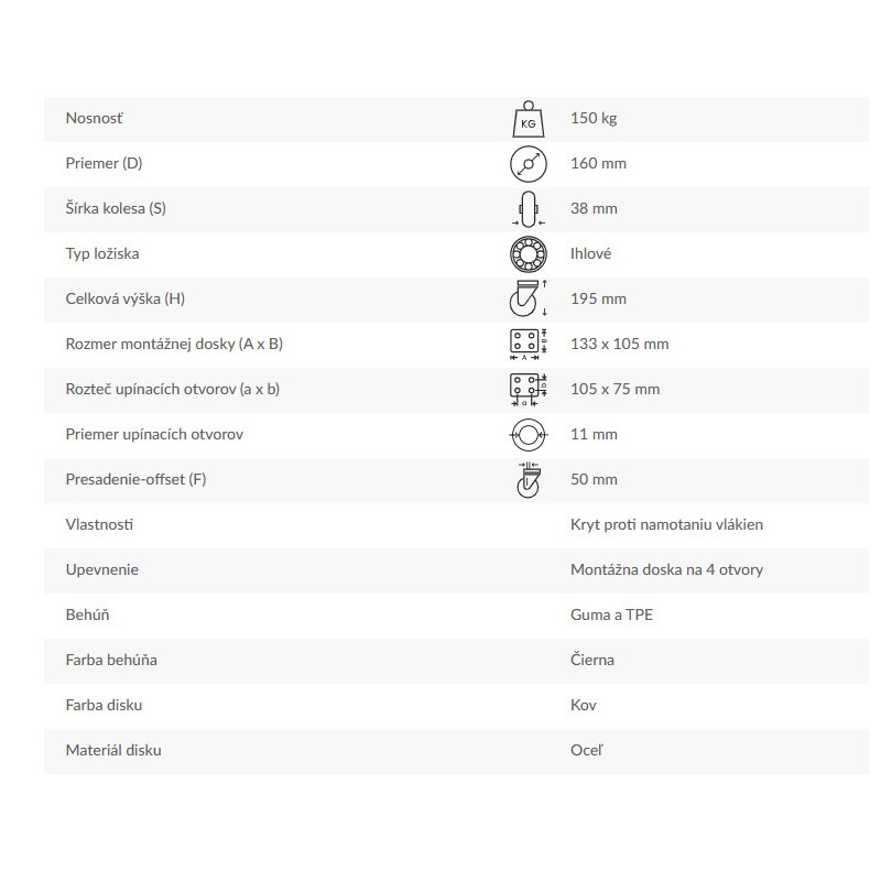 Pevné rolovacie koliesko - spôsob upnutia: montážna doska na štyri otvory (príruba).