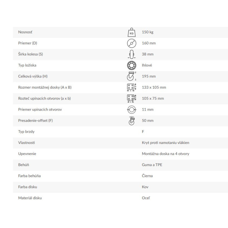 Otočné rolovacie koliesko s brzdou - spôsob upnutia: montážna doska na štyri otvory (príruba).