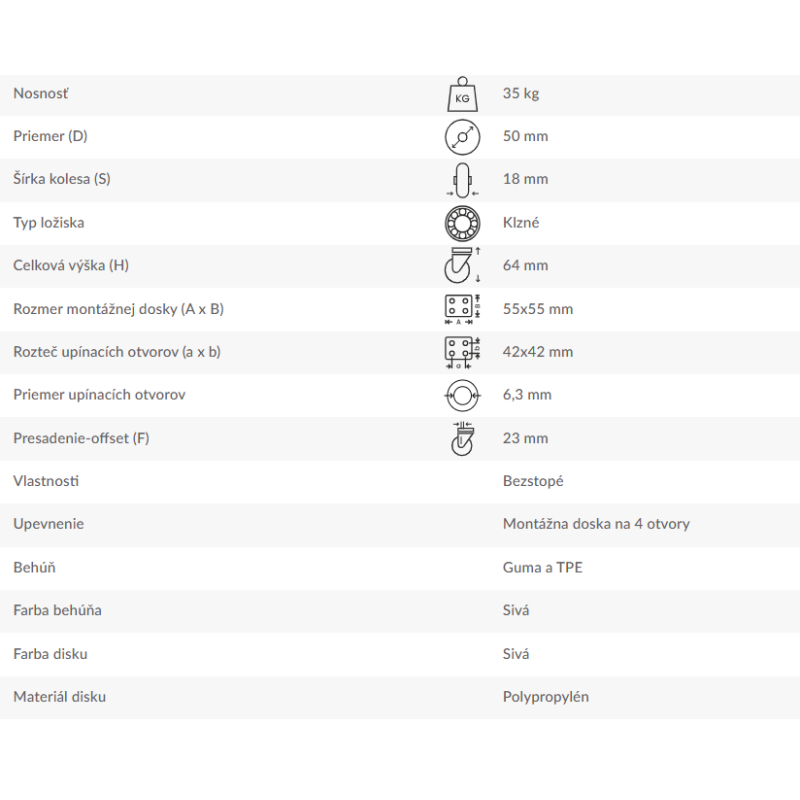 Otočné rolovacie koliesko s montážnou doskou na štyri otvory