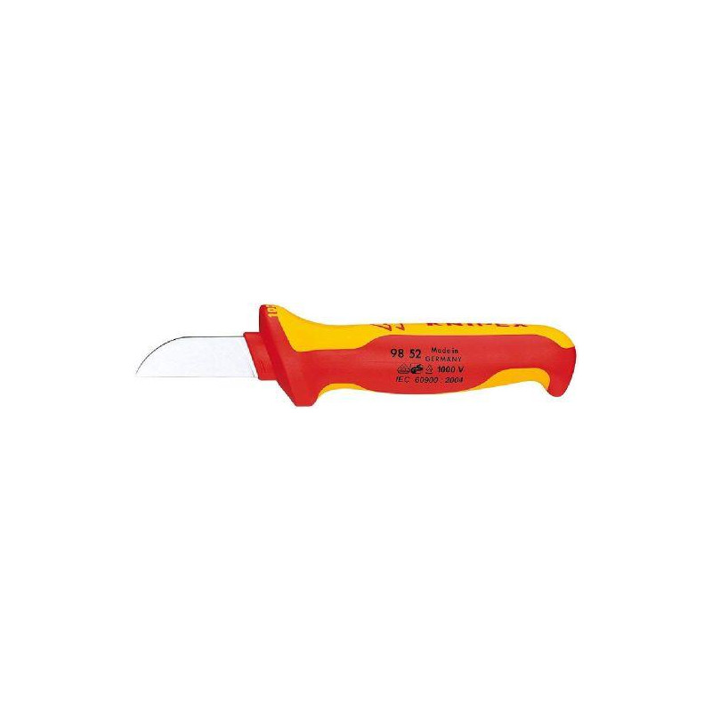 Ergonomicky tvarovaná rukoväť s príjemne vytvorenou ochranou proti skĺznutiu. Viac bezpečnosti vďaka protišmykovej mäkkej vrstve. Dobrý prenos sily pri ťahu noža vďaka priehlbine pre palec a „prstovému háčiku“ na konci rukoväte. Stabilná, pevná háková čepeľ s rovným britom. Priehľadná ochranná krytka. Druhá strana čepele potiahnutá plastom na zabránenie skratov.