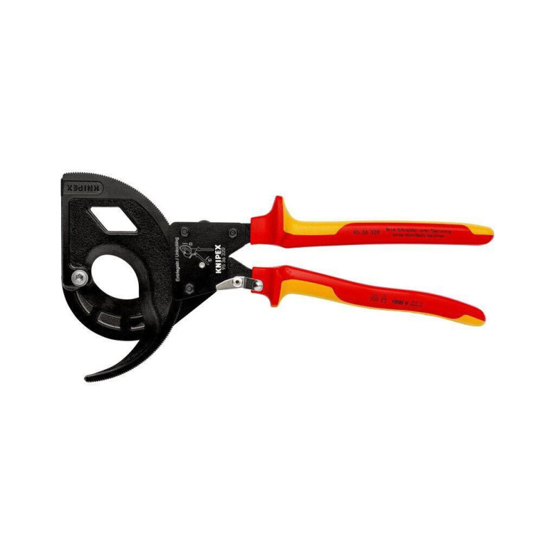 Robustné. Praktické. Stabilné. Novátorský pohon ozubeným vencom. Na káble do priemeru 60 mm. Ľahká manipulácia vďaka nízkej hmotnosti (825 g) a kompaktná konštrukcia (dĺžka 320 mm) – možnosť použitia v stiesnených priestoroch. Strihajú medené a hliníkové káble až do priemeru 60 mm v jednoručnom i dvojručnom režime. Kalené brity s presným výbrusom režú hladko, čisto a bez deformácie. Pre strihanie medených a hliníkových káblov, jednovodičových i viacvodičových (nevhodné na oceľový drôt a oceľové laná). Návlek pevného ramena s plochou pre opretie pri strihaní. Špeciálna nástrojová oceľ vo zvláštnej akosti, kovaná, kalená v oleji.