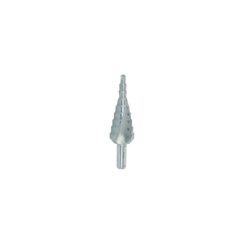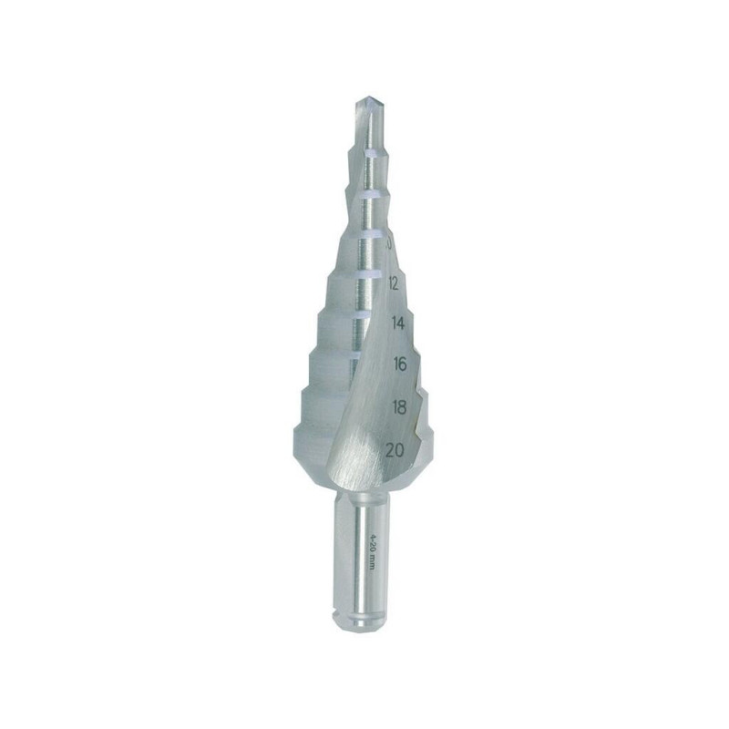 Stupňovitý vybrušovaný vrták s vybroušenou šroubovitou drážkou nabízí velký výkon a velmi klidný záběr při vrtání, přičemž šroubovitá drážka současně přispívá k dobrému dělení a rychlému odvodu vzniklé třísky.