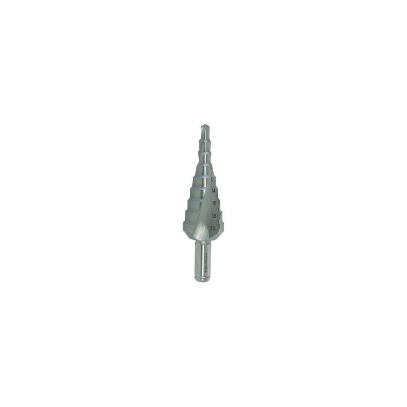 Stupňovitý vybrušovaný vrták s vybroušenou šroubovitou drážkou nabízí velký výkon a velmi klidný záběr při vrtání, přičemž šroubovitá drážka současně přispívá k dobrému dělení a rychlému odvodu vzniklé třísky.