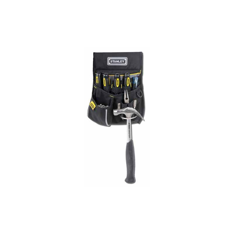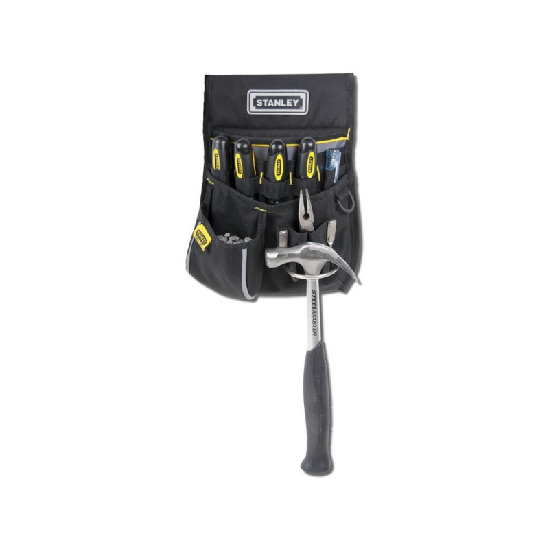 z pevnej a odolnej tkaniny s hustotou 600 vlákien; vačky rôznych veľkostí a oká umožňujúce ľahké rozdelenie náradia; veľkosť a štruktúra úložných otvorov zodpovedá potrebe rýchleho a jednoduchého prístupu k náradiu; kovové oko pre zavesenie kladiva; ergonomické polstrovanie vnútornej strany pre bezpečie a pohodlie užívateľa; náradie nie je súčasťou dodávky!