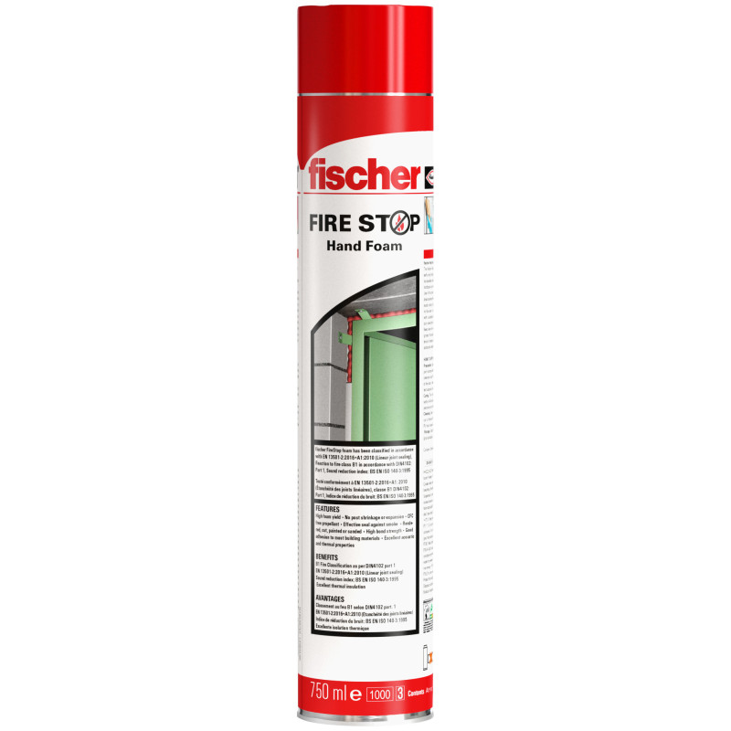 fischer protipožiarna pena PU je jednokomponentná, samoexpanzná polyuretánová pena, ktorá bola navrhnutá tak, aby vytvrdla absorbovaním vlhkosti zo vzduchu. Pena má vynikajúce priľnavé vlastnosti a priľne na väčšinu stavebného materiálu, pena vytvrdne na polopevnú štruktúru absorbujúcu mierny pohyb a vibrácie. Otestované podľa DIN 4102, BS 476 a EN1366-4, protipožiarna pena má vynikajúce tepelnoizolačné vlastnosti a pomáha redukovať akustický index budovy. Prestupy rozvodov by mali byť adekvátne chránené vhodným protipožiarnym materiálom ako je: FiAM expanzný akustický tmel, UFS univerzálny protipožiarny tmel, FiGM expanzný grafitový tmel, FFC manžeta na potrubie a musí byť v súlade so schváleným systémom