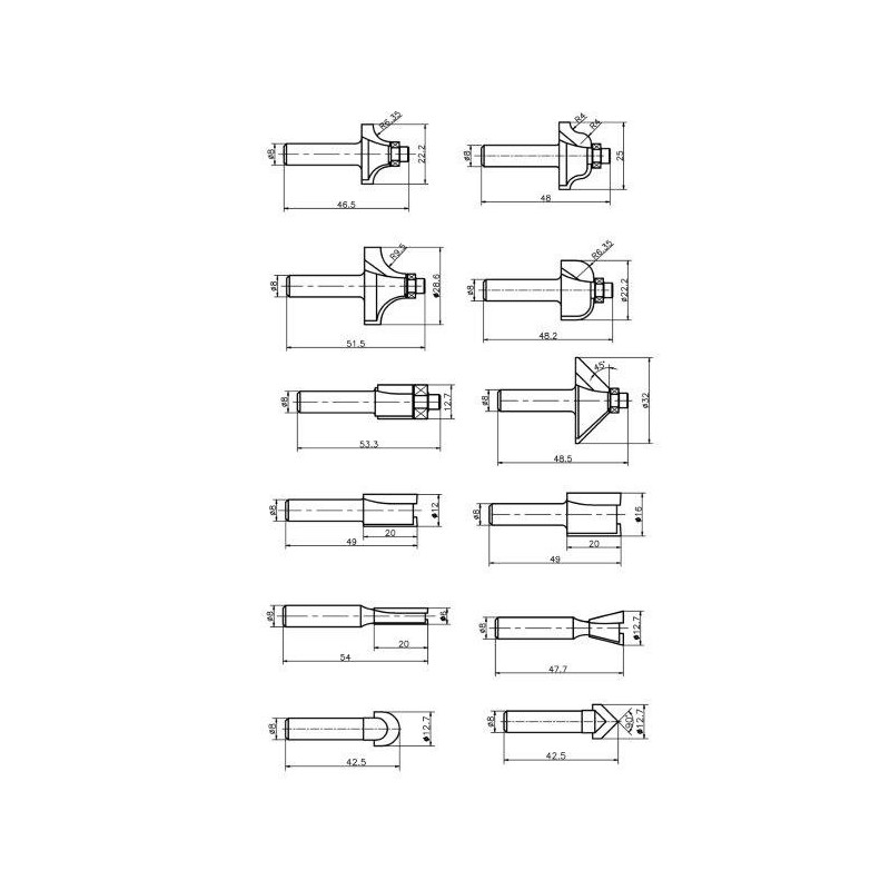 Sada HM fréz stopka 8mm - 12 ks. Balení AL kufr.