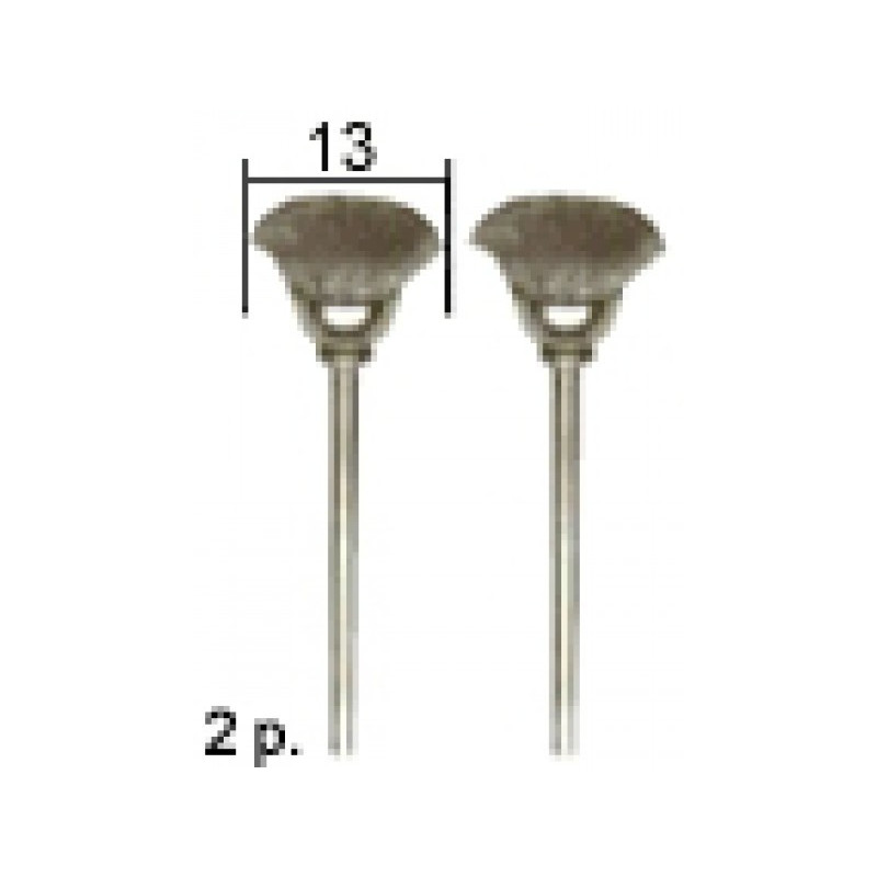 Z kvalitného materiálu pre vysoký výkon. Na čistenie, odstraňovanie hrdze, odhrotovanie, zmatňovanie, zdrsňovanie, zaobľovanie okrajov kovov, liatin, plastov, kameňa a dreva. Upínacia stopka 2,35 mm.